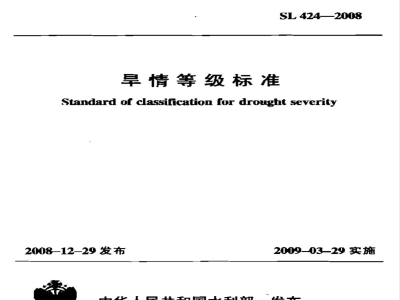 中华人民共和国水利部批准(旱等级标准》2008)为水利行业标准,现予以公布。序号