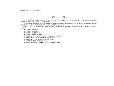 本标准规定了计弃机图形元文卷的二进制编列,对汀在/T15121.1+划定的每个素,根据效据类型舰定了一个编码。对这些数据类型的每个接照位、八位位红和字规冠了--个显式表示。对下自些数据类型,确切的表示是用于元文卷内函数功能.正如在元文卷猫达符中所记录的那样。车许多情况下,图形元文卷的这种编码将使元文鉴的生成析解释所需的努力最小。2引用标准