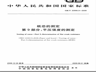 GB/T22906《纸芯的测定》分为九个部分:第1部分:试样的采取;