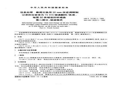 GB/T15130规定了90mm用改进调频制(MFM)记录的位密度为15916磁通翻转/弧度、每面80条磁道的软磁盘的性能。