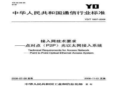 YD/T 1807-2008 接入网技术要求—点对点(P2P)光以太网接入系统 YD/T1807-2008 标准下载解压密码:www.bzxz.net