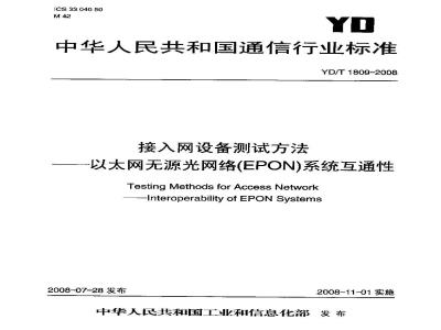 YD/T 1809-2008 接入网设备测试方法——以太网无源光网络(EPON)系统互通性 YD/T1809-2008 标准下载解压密码:www.bzxz.net