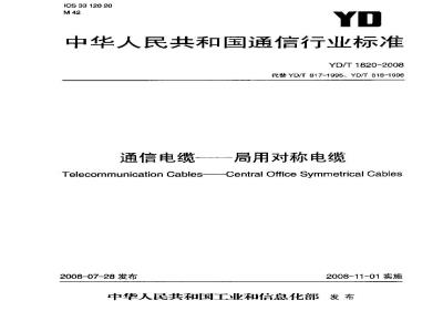 代替 YD/T 817-1996、YD/T 81B-1996通信电缆一局用对称电缆