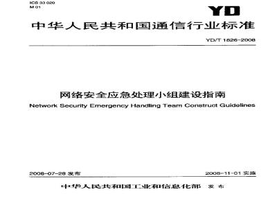 本标准是网络与信息安全应急处理系列标准。该系列标准的名称如下:1.YDT1826-2008网络安全应急处理小组建设指南:2. YD/T 1827-2008