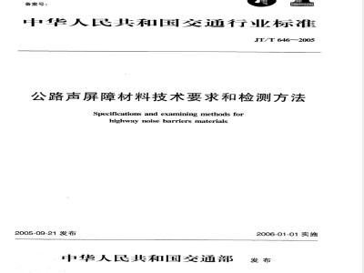 JT/T 646-2005 公路声屏障材料技术要求和检测方法 JT/T646-2005 标准下载解压密码:www.bzxz.net