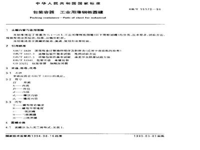 本标准规定了容量为0.1~16L工业用薄钢板圆罐的分类、技术要求、试验方法、检验规则及其标志、包装、运输和贮存。本标准适用于圆罐的制造、流通、使用和监督检验。 GB/T 15170-1994 包装容器 工业用薄钢板圆罐 GB/T15170-1994 标准下载解压密码:www.bzxz.net
