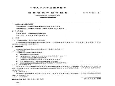 本标准规定了运输包装件抽样检验方法及判定规则。本标准适用于运输包装件的质量检查。 GB/T 15172-1994 运输包装件抽样检验 GB/T15172-1994 标准下载解压密码:www.bzxz.net