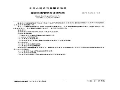 本空白详细规范规定了制定“变容二极管”详细规范的基本原则,制定该范围内的所有详细规范应与本空白详细规范一致。本空白详细规范是与GB4589.1-89《半导体器件 分立器件和集成电路总规范》和GB12560-90《半导体器件 分立器件分规范》有关的一系列空白规范中的一个。 GB/T 15178-1994 变容二极管空白详细规范 GB/T15178-1994 标准下载解压密码:www.bzxz.net
