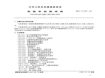 本标准适用于法兰连接、内螺纹连接的公称通径DN8~300mm,公称压力PN≥1.6MPa的灰铸铁制、PN≤4.0MPa的球墨铸铁制、PN≤2.5MPa的可锻铸铁制及PN≤2.5MPa的铜合金制球阀。其他连接形式的球阀可参照执行。2引用标准
