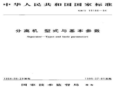 本标准规定了管式分离机、碟式分离机、实验室离心机的型式与基本参数。本标准适用于管式分离机、碟式分离机、实验室离心机(即试管式分离机)。 GB/T 15186-1994 分离机 型式与基本参数 GB/T15186-1994 标准下载解压密码:www.bzxz.net