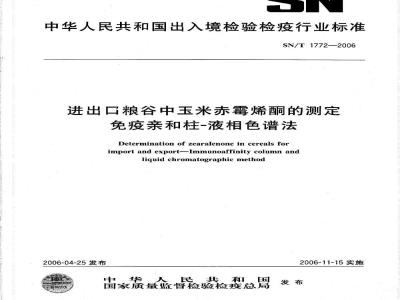 Determination of zearalenone in cereals forimport and exportImmunoaffinity column andliquid chromatographic method2006-04-25发布