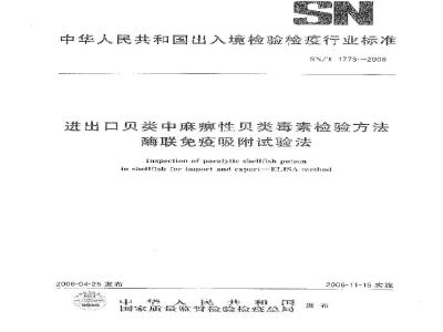 Inspectign af paralytic shelrish poisomin shelllish ror import and exportELiSA method2006-04-25发布