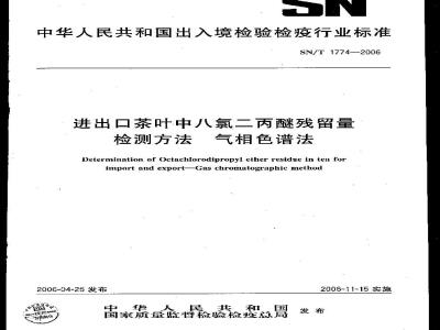 Determination of Octachlorodipropyl ether residue in tea forimport and exportGas chromatographic method2006-04-25发布