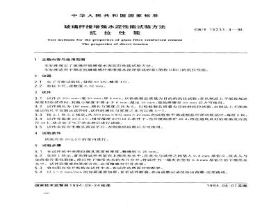 本标准规定了玻璃纤维增强水泥抗拉性能试验方法。GB/T15231.4—94
