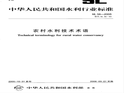 本标准是根据水利部国际合作与科技司制定、修订水利行业标准的计划要求和《标准编写规则第1部分:术语》(GB/T 2001.1-2001)修订的。《农田水利技术术语》(SL 56-93)颁布11年来,对我国农村水利发展发挥了重大的作用。由于农田水利的理论、技术与实践均发生了很大变化,发展农业节水、进行灌区以节水为中心的技术改造、解决人畜饮水、发展牧区水利是当前和今后相当长时间内的主要工作,有必要对原规范进行修订。标准名称更改为《农村水利技术术语》。本标准修订的主要内容有:--对原规范框架、结构进行了调整;--一般术语原则上解释一级、二级标题;--增加了灌区、农田水土环境和灌溉排水建筑物三章,并将村镇供水排水和牧区水利分为两章,删去了农田水利新技术应用一章;--增加了农业节水主要技术术语;--增加了灌区续建配套与节水改造主要技术术语;--增加了农田水土环境主要技术术语;--补充了灌溉排水建筑物施工、管理及其老化诊断、评价、改造等方面的主要技术术语;--补充了村镇供水排水规划、设计和运行管理的主要技术术语;--补充了牧区水土资源评价、牧场供水、草牧场节水灌溉和牧区生态系统方面的主要技术术语;--对古代农田水利术语结构进行了调整,补充了相关内容。本标准所替代标准的历次版本为:--SL 56-93本标准批准部门:中华人民共和国水利部本标准主持机构:水利部农村水利司本标准解释单位:水利部农村水利司本标准主编单位:中国灌溉排水发展中心本标准参编单位:武汉大学、中国水利水电科学研究院、西北农林科技大学、河海大学、中国农业大学、扬州大学、北京工业大学、内蒙古农业大学、水利部农田灌溉研究所本标准出版、发行单位:中国水利水电出版社本标准主要起草人:李远华、李琪、王晓玲、蔡焕杰、许迪、黄介生、韩振中、石自堂、刘景植、谭徐明、彭世彰、张仁铎、龚时宏、沙鲁生、谢崇宝、陈渠昌、许建中、马孝义、冯卫民、王修贵、崔远来、李光永、冯绍、窦以松、徐云修、吴涤非、孙景生、刘丽艳、陈亚新、刘群昌、邓丽、周世锋、王丽红、魏占民、王少丽本标准审查会议技术负责人:茆智本标准体例格式审查人:乐枚 SL 56-2005 农田水利技术术语 SL56-2005 标准下载解压密码:www.bzxz.net