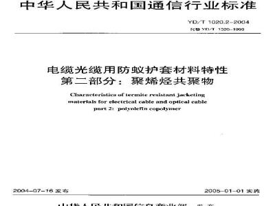 中文名称:电缆光缆用防蚁护套材料特性 第二部分:聚烯烃共聚物