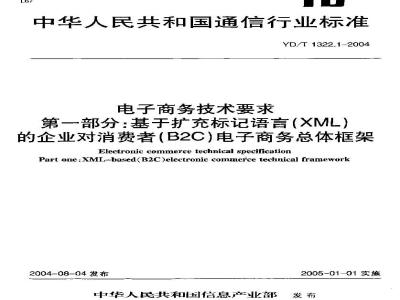 中文名称:电子商务技术要求 第一部分:基于扩充标记语言(XML)的企业对消费者(B2C)电子商务总体框架