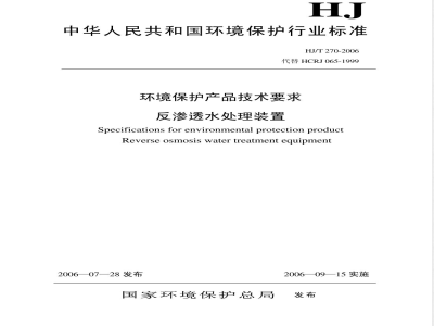 本标准规定了反渗透水处理装置的定义、规格与型号、要求、试验方法、检验规则、标志、包装、运输和贮存。本标准适用于处理工业废水和城市污水净化再利用的反渗透水处理装置,也适用于一般天然水的净化、除盐的反渗透水处理装置。 HJ/T 270-2006 环境保护产品技术要求 反渗透水处理装置 HJ/T270-2006 标准下载解压密码:www.bzxz.net