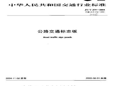 本标准规定了公路交通标志板的技术要求,试验方法,检验规则,标志、包装、运输和贮存。本标准适用于我国各级公路设置的交通标志板。城市道路及旅游区、厂矿、港口、林场、机场等地区设置的标志板可以参照执行。 JT/T 279-2004 公路交通标志板 JT/T279-2004 标准下载解压密码:www.bzxz.net
