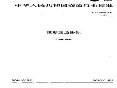本标准规定了锥形交通路标(简称交通锥)的技术要求、试验方法、检验规则、标志、包装、运输及贮存。本标准适用于道路施工中用以临时阻挡或分隔车流、引导交通的锥形交通路标,用作其他用途的锥形交通路标可参照使用。 JT/T 595-2004 锥形交通路标 JT/T595-2004 标准下载解压密码:www.bzxz.net
