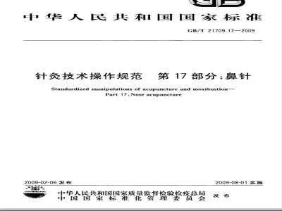 中文名称:针灸技术操作规范 第17部分:鼻针