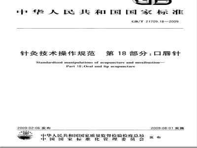 Standardized manipulations of acupuncture and moxibustion-Part 18 :Oral and lip acupuncture2009-02-06发布