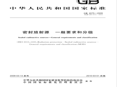 Sealed radioactive sourcesGeneral requirements and classification(ISO 2919:1999,Radiation protection—Sealed radioactive sources-General requirements and classification, MOD)2009-03-13发布