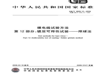 第12部分:镀层可焊性试验焊球法Test methods for bare wires-Part 12: Solderability test of coatingSolder globule method2009-03-19发布
