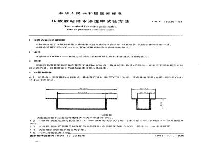 中文名称:压敏胶粘带水渗透率试验方法