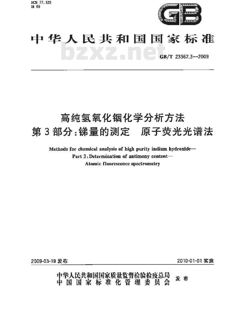 Methods for chemical analysis of high purily indium hydroxide-Part 3:Deternination of antimony content-Atomic Iluorescence spectrometry2009-03-19发布