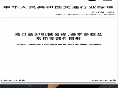 JT/T 86-2009 港口装卸机械名称、基本参数及常用零部件图形 JT/T86-2009 标准下载解压密码:www.bzxz.net