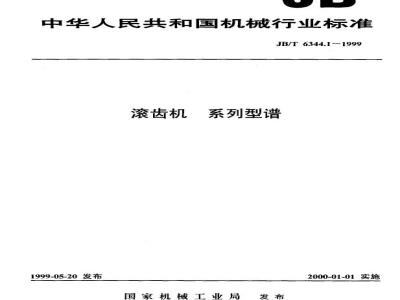 本标准是对JB/Z333—88《滚齿机系列型谱》的修订。本标准与JB/Z333一88的技术内容基本致,主要差异是:1,按有关规定进行了编辑性修改:2.对滚齿机的用途、性能及结构特征作了部分修改。本标准是JB/T6344《滚齿机》系列标准的一部分,该系列标准包括以下两部分:JB/T6344.1—1999