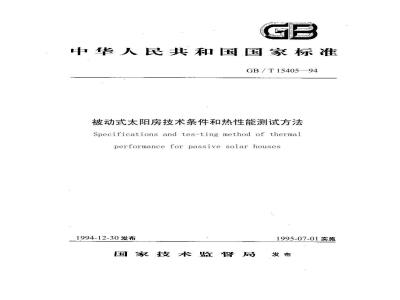 被动式太阳房技术条件和热性能测试方法Specifications and tes-ting method of thermalperformance for passive solar houses1994-12-30发布