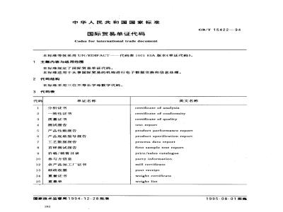 本标准规定了国际贸易单证代码。本标准适用于从事国际贸易的机构进行电子数据交换和信息处理。