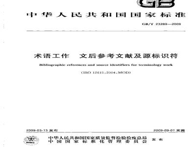 术语工作文后参考文献及源标识符GB/T 23289—2009