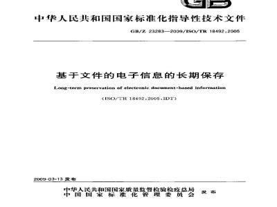 中华人民共和国国家标准化指导性技术文件GB/Z23283—2009/IS0/TR18492:2005基于文件的电子信息的长期保存Long-term preservation of electronic document-based informatian(ISO/TR18492.2005,IDT)