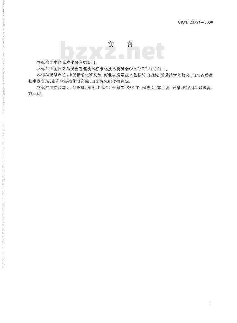 本标雅由全愿食品安全管理技术标准化技术委员会(SAC/rC313)归口GB/T23734--2009