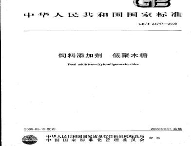 本标准规定了饲料添加剂低聚木糖的定义、技术要求、试验方法、检验规则、标签、包装、运输、贮存和保质期。本标准适用于以富含半纤维素的植物(如玉米芯等)为原料,经木聚糖酶酶解,添加以允许作为载体(或助剂)使用的物质如玉米芯、石粉、二氧化硅粉等复配而成的低聚木糖产品,作为饲料添加剂。 GB/T 23747-2009 饲料添加剂 低聚木糖 GB/T23747-2009 标准下载解压密码:www.bzxz.net