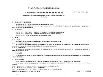 GB/T 15451-1995 工业循环冷却水中碱度的测定 GB/T15451-1995 标准下载解压密码:www.bzxz.net