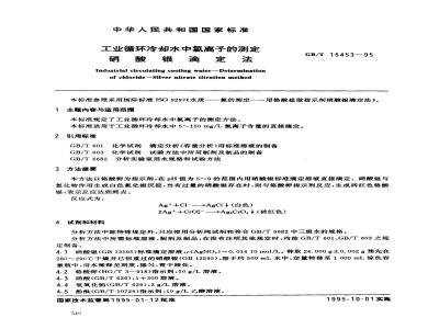 Industrial circulating cooling water--Determinationof chloride--Silver mitrate titration methodGB/T 15453-95
