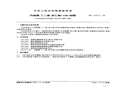 本标准规定了丙烯腈?丁二烯?苯乙烯(ABS)树脂的技术要求、试验方法、检验规则以及标志、包装、运输和贮存要求。本标准适用于以聚丁二烯弹性体为分散相,以丙烯腈-苯乙烯(或其衍生物)共聚物为连续相;或连续相中含有5%以下的其他共聚单体和聚合物的ABS树脂。本标准不适用于增强或改性的ABS材料。 GB 12672-1990 丙烯腈-丁二烯-苯乙烯(ABS)树脂 GB12672-1990 标准下载解压密码:www.bzxz.net
