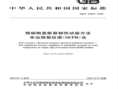 本标准规定了在常温下用预裂纹梁(SEPB)法测量精细陶瓷材料断裂韧性的实验方法。本标准适用于均质块体陶瓷和陶瓷复合材料,但不适用于含有连续纤维增强的陶瓷复合材料。 GB/T 23806-2009 精细陶瓷断裂韧性试验方法 单边预裂纹梁(SEPB)法 GB/T23806-2009 标准下载解压密码:www.bzxz.net