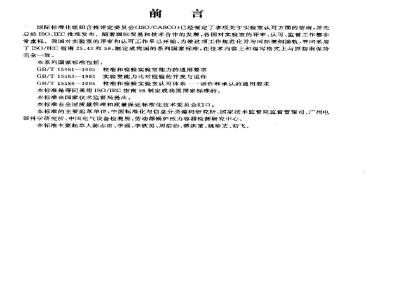 尽管ISD/IEC指南旨在提供指导·但希塑个国家引进认可体系时,对这些支件要尽量少作变动,考虑到某些国家可能选择直接采用这些指南的方式,为了能做到这点,在书写那些希塑是强制的内容时,使用了诸她\应(shall)”这样的词。坚持本文件旨在提供指导的基本原则才是有效的。只是到了近几年国家认可机构才有了大规模的发展,因为有必要使所有经济部门都能得到质量水乎评审的检验服务,还因为需要能比较容易地相百承认校推和检验结果。本指南是国际标准化组织合格评定委员会(ISO/CASCO)1992年9月批准,国际电工委员会理车会1992年10月批准的。
