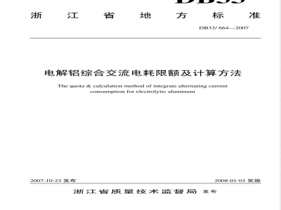 DB33/664-2007 电解铝综合交流电耗限额及计算方法 DB33/664-2007 标准下载解压密码:www.bzxz.net