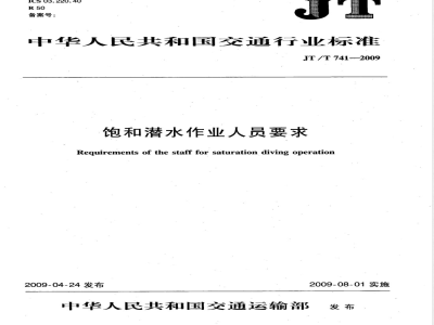 JT/T 741-2009 饱和潜水作业人员要求 JT/T741-2009 标准下载解压密码:www.bzxz.net