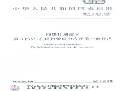 本部分为GB/T13400的第3部分,代替GB/T13400.3-1992《网络计划技术 在项目计划管理中应用的一般程序》。