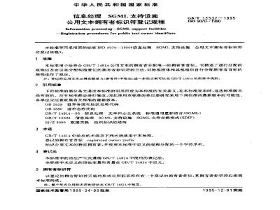 公用文本拥有者标识符登记规程Information processing-SGML support faclltles-Registration procedures for public test owner identifiersGB/T 155371995