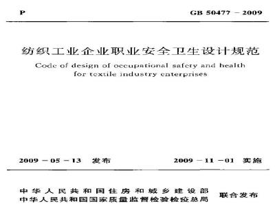 GB 50477-2009 纺织工业企业职业安全卫生设计规范 GB50477-2009 标准下载解压密码:www.bzxz.net