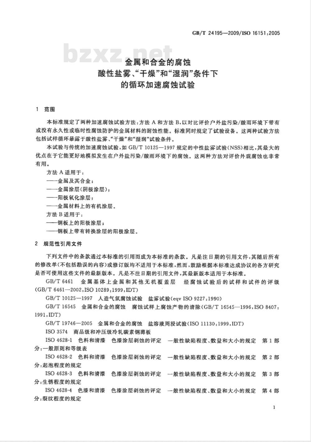 GB/T 24195-2009 金属和合金的腐蚀 酸性盐雾、“干燥”和“湿润”条件下的循环加速腐蚀试验 GB/T24195-2009 标准下载解压密码:www.bzxz.net