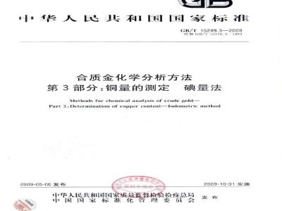 GB/T15249《合质金化学分析方法》分为如下5个部分:第1部分:金量的测定火试金重量法,第2部分:银量的测定